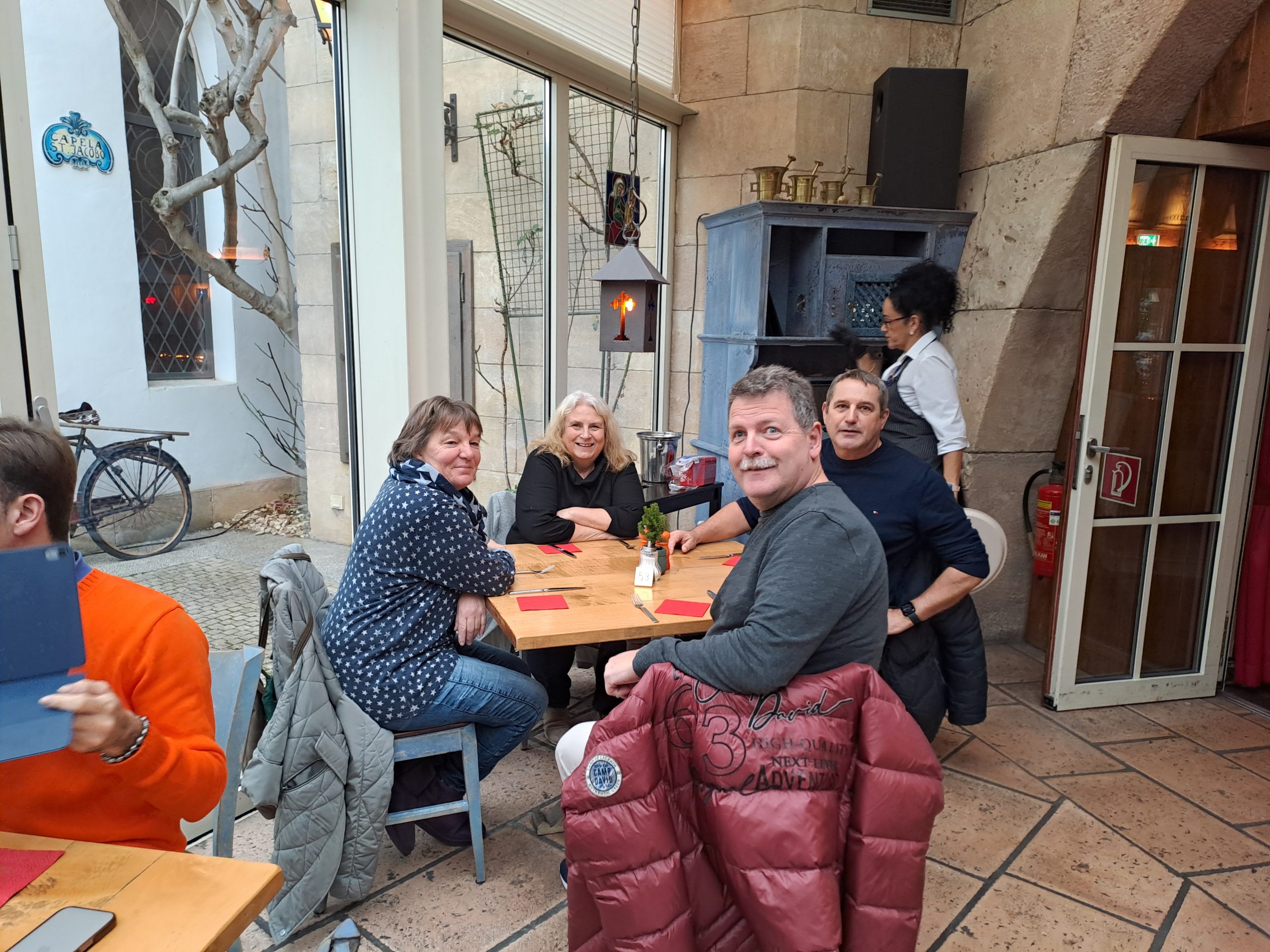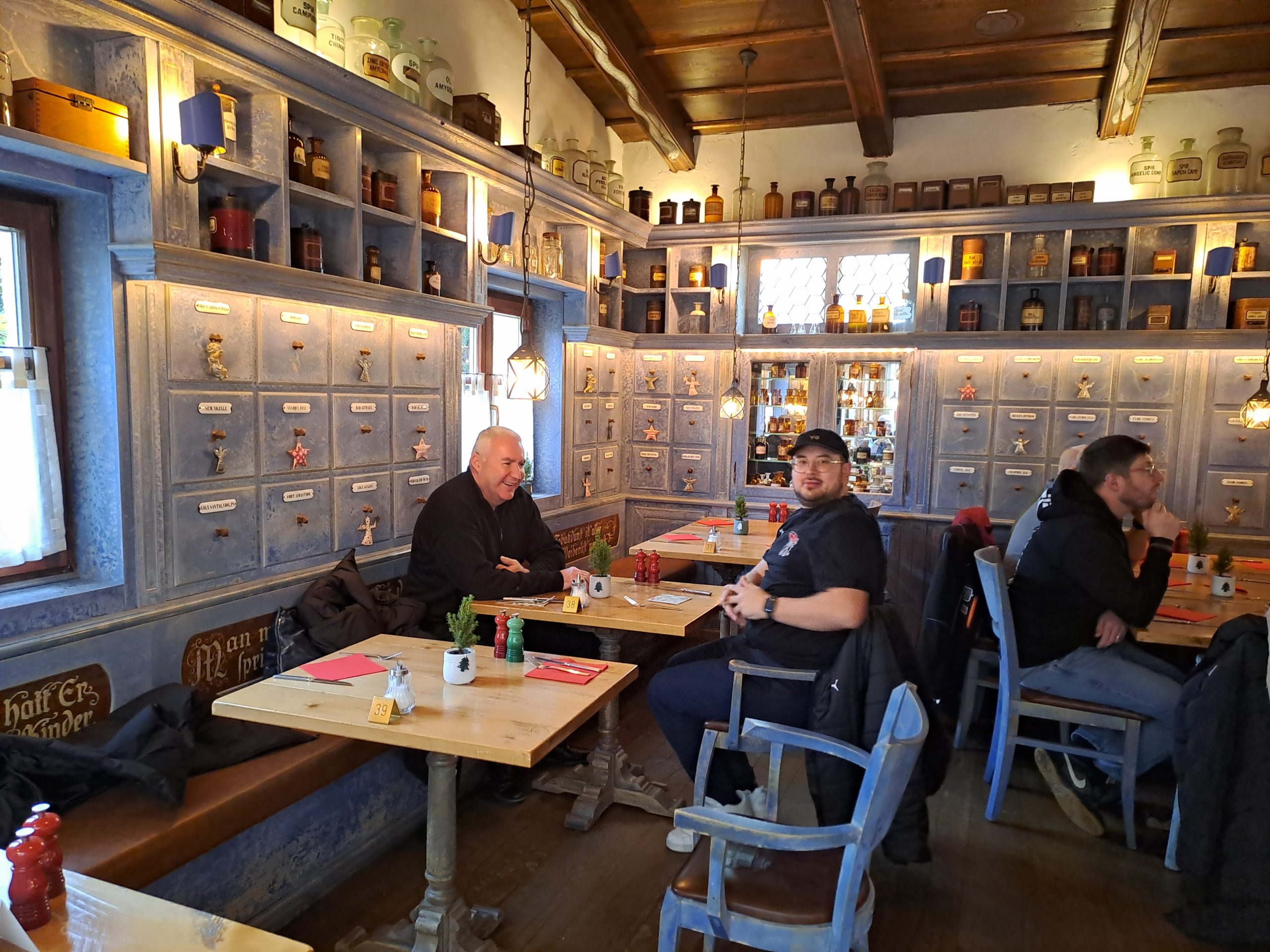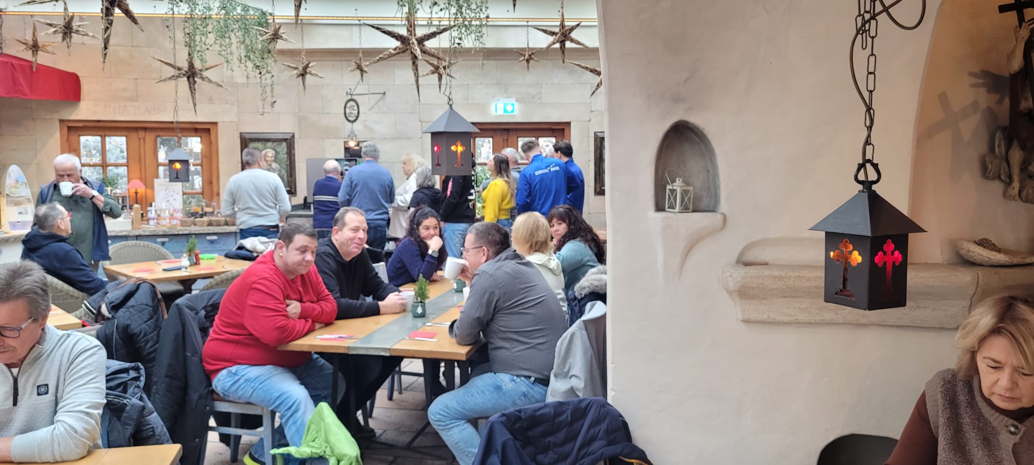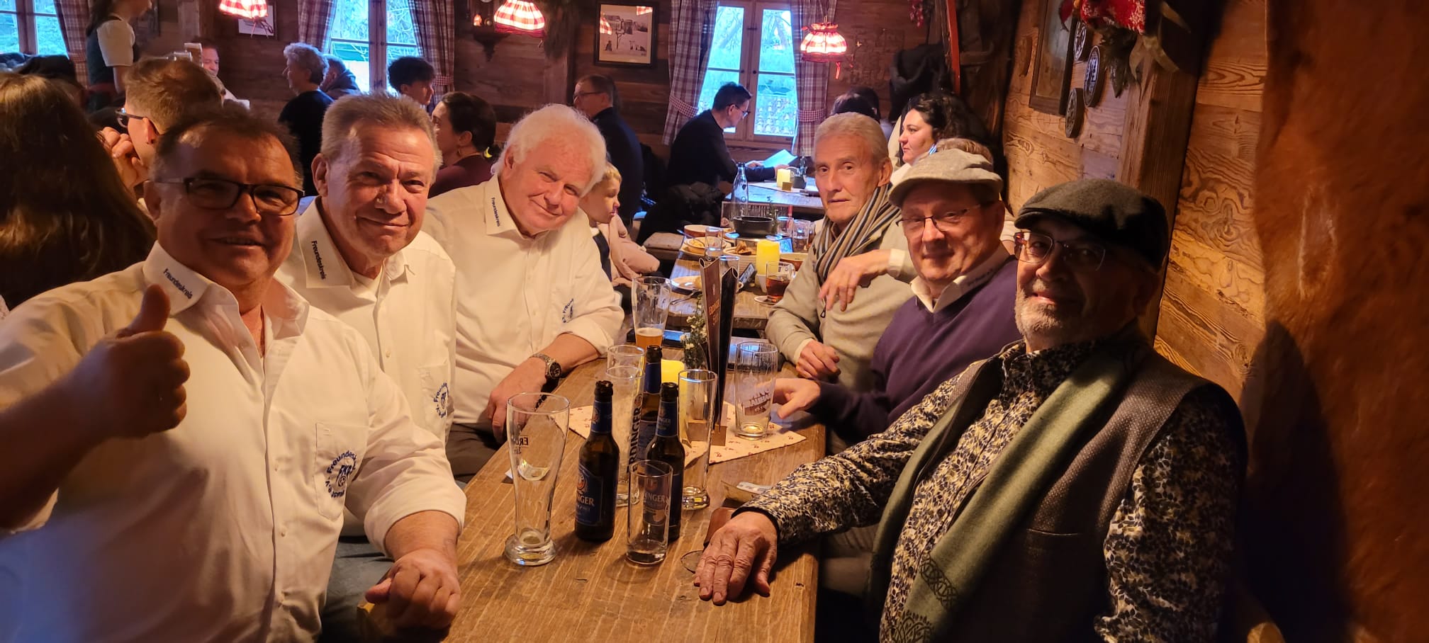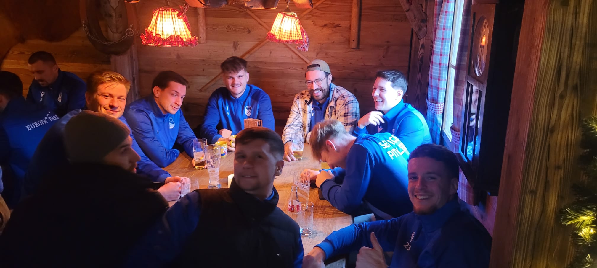 Nach dem Frühstück machten sich alle auf den Weg zum Weihnachtsmarkt im Europapark. Dort ließ man sich ein kühles Bier oder einen heißen Glühwein schmecken – mit oder ohne Schuss – und genoss die festliche Stimmung.
