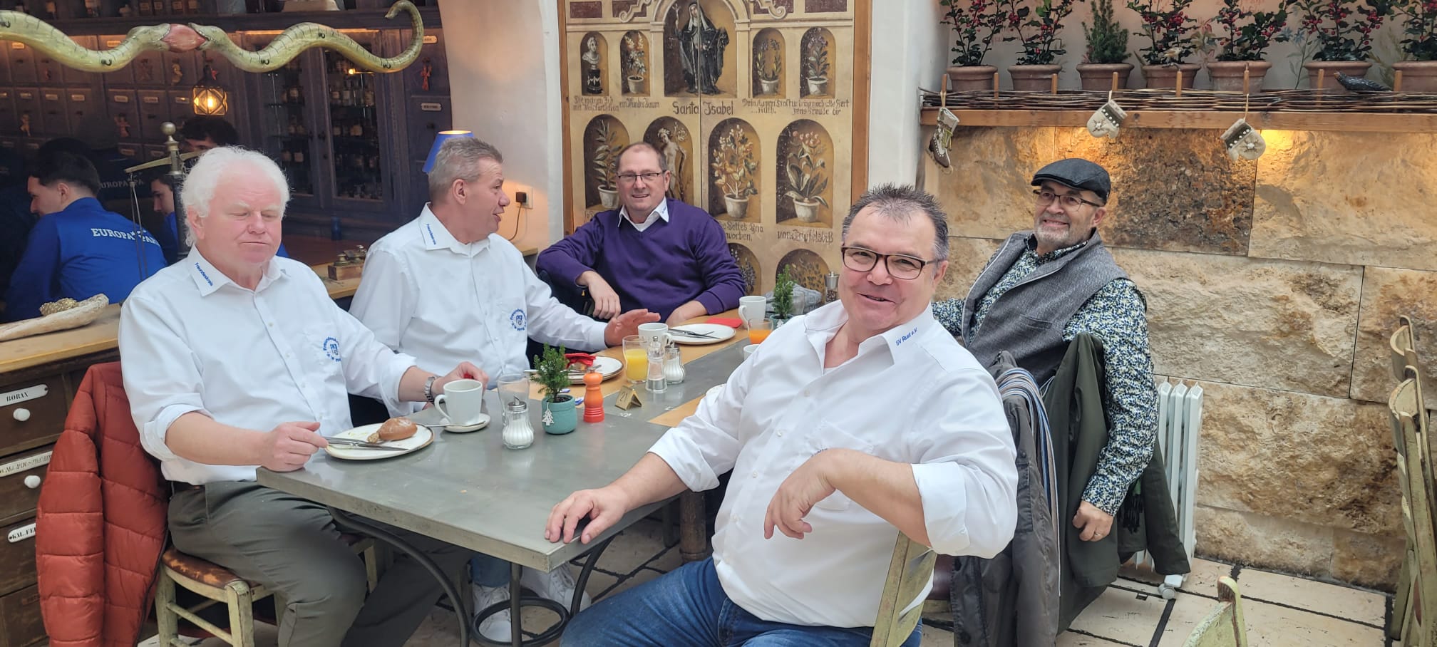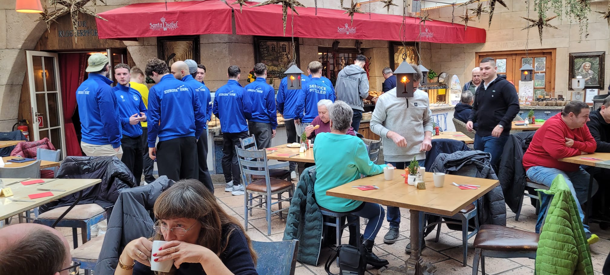 Am 14. Dezember trafen sich unsere Mitglieder und die Spieler gemeinsam mit dem SV Rust zum Frühstück im Hotel Santa Isabell im Europapark. Pünktlich um 10:00 Uhr eröffnete das liebevoll angerichtete Frühstücksbuffet. Der 2. Vorsitzende Gerhard Bender begrüßte alle Anwesenden herzlich und bedankte sich bei Ewald Scherer für die Unterstützung bei der Organisation des Tages. Ein besonderer Dank ging an die Familie Mack für ihr Entgegenkommen gegenüber unseren Mitgliedern und den Spielern – schon seit Jahren gehört dieser schöne Jahresabschluss zu unseren festen Traditionen. Dafür nochmals ein großes Danke schön.
